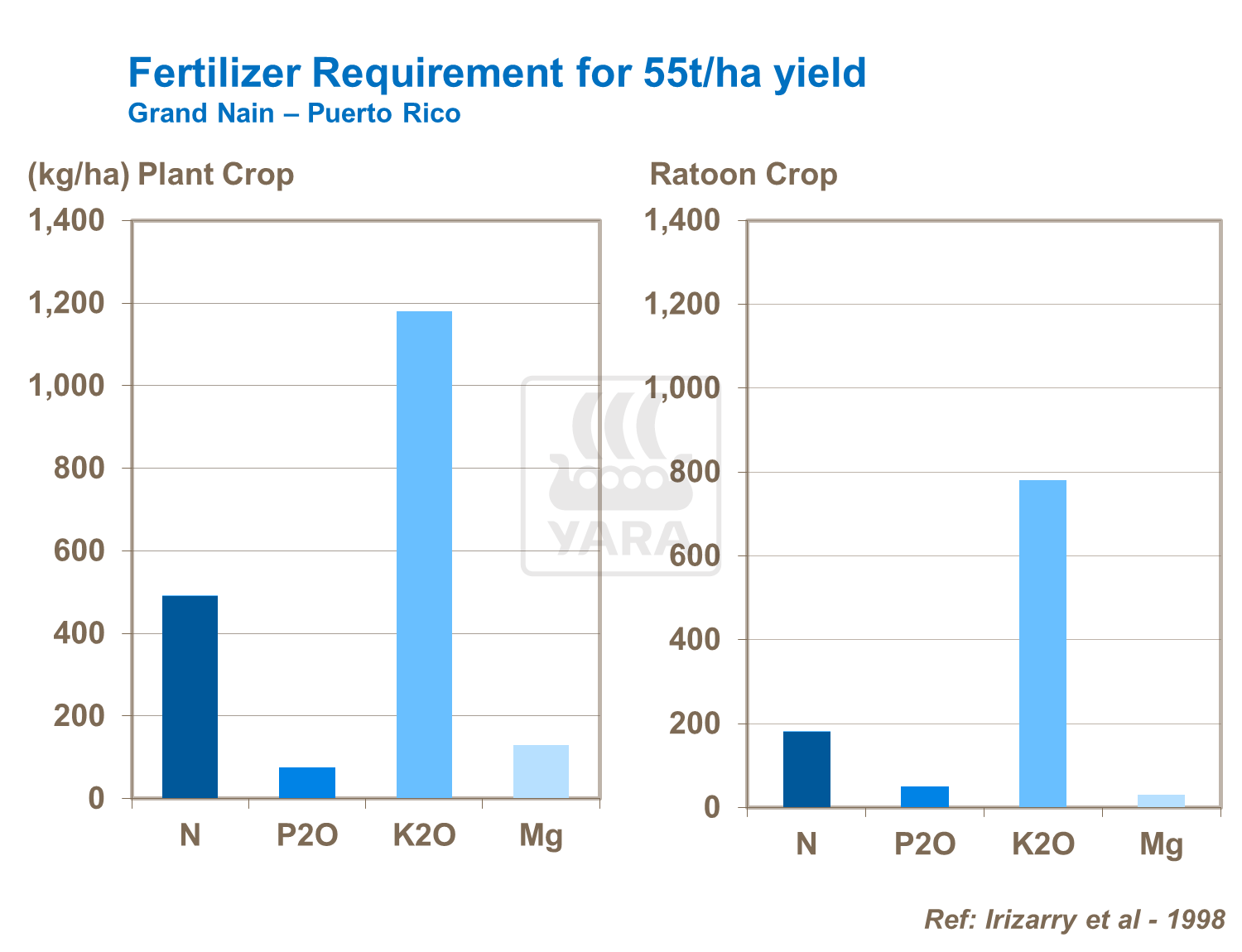 In ratoon crops, nitrogen, phosphorus, potassium, sulfur, boron, manganese and copper are highly remobilized and utilized by the current crop. In comparison, magnesium, iron and sink are only moderately remobilized and calcium is not recycled at all and therefore requires regular applications within every crop. It is particularly important to ensure that the daughter sucker is targeted. Especially with micronutrients to ensure vigorous growth of the next generation is not limited.