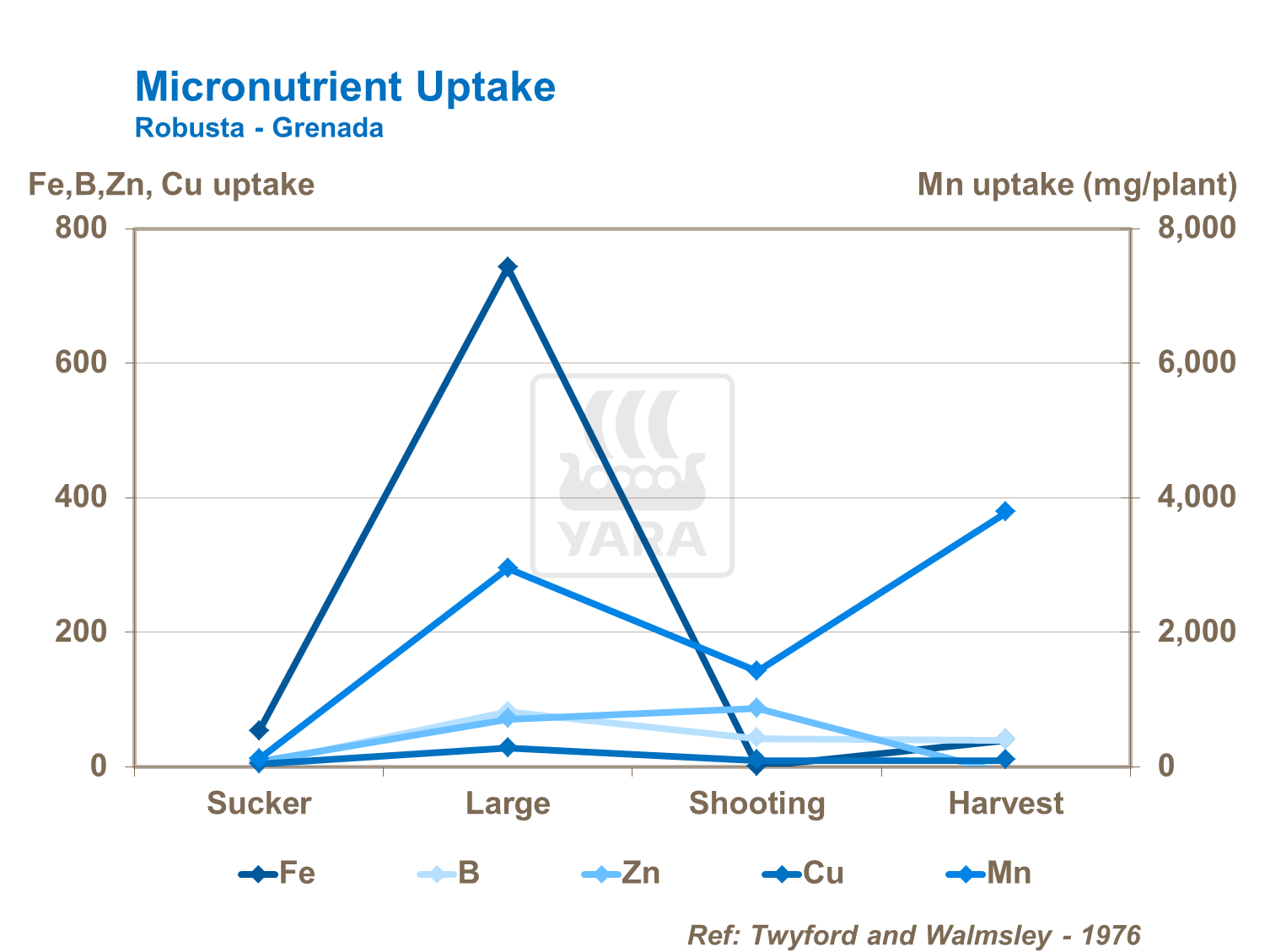 While much lower amounts of micronutrients are needed to satisfy good growth, iron, zinc, manganese, boron, copper and molybdenum are key elements.