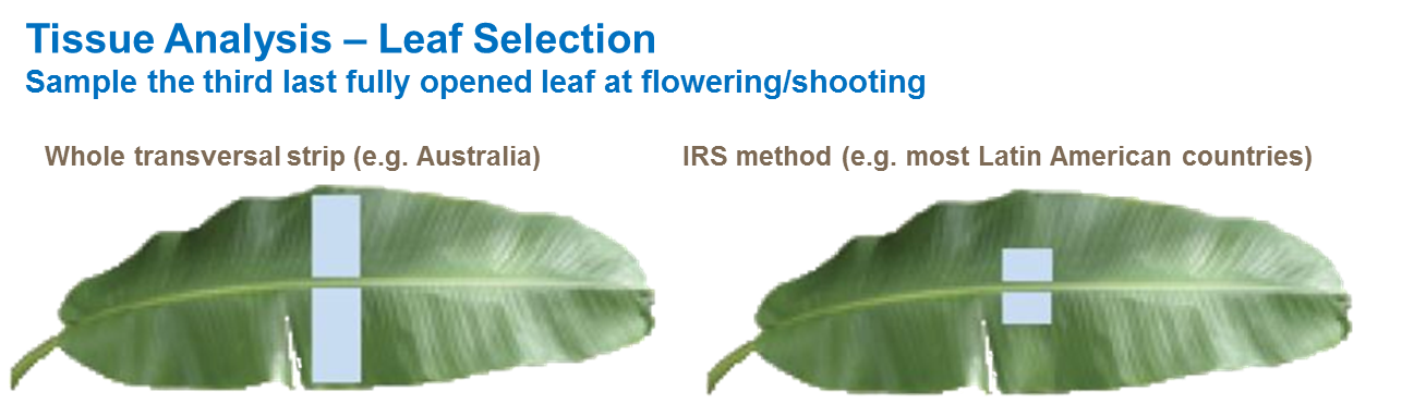 The most widely practiced method (IRS, International Reference System) analyzes the inner leaf area, but it is also acceptable to assess the nutrient status of the whole transversal strip.