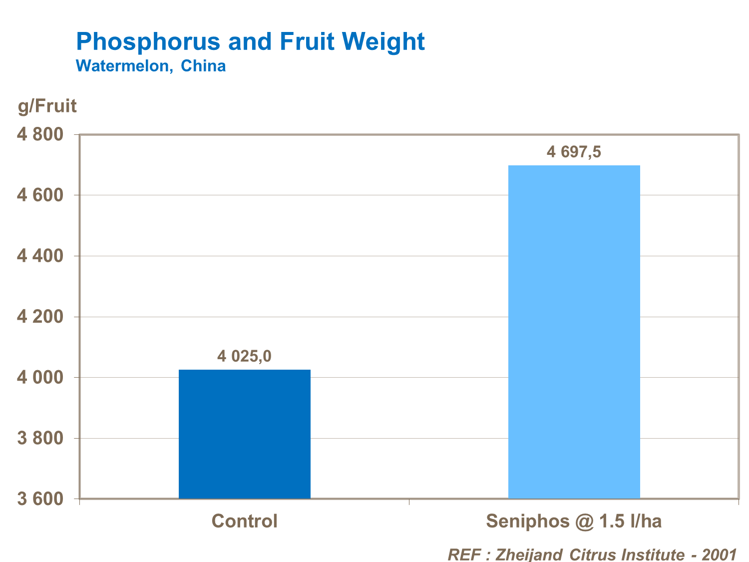 Phosphorus is not needed in large quantities but is required during the season for field grown crops. Phosphorus is used throughout the growth period, ensuring a good start and continued growth of a higher yielding crop, with heavier fruit.