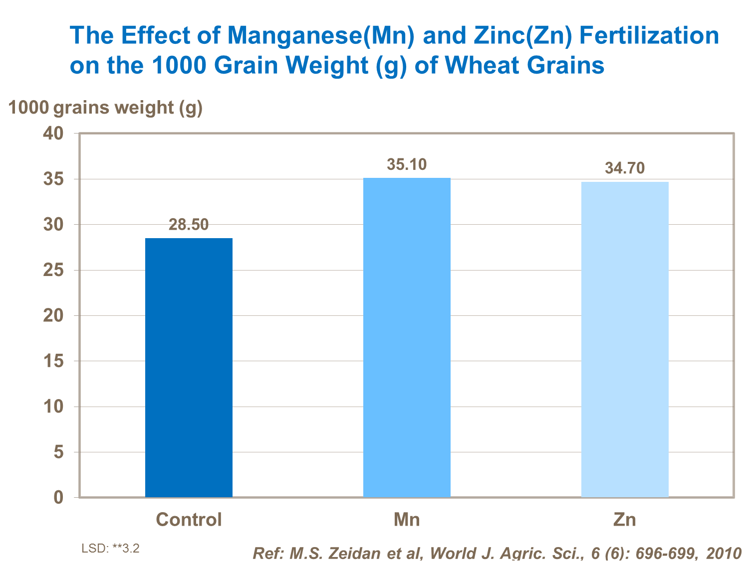 Manganese and zinc are two important micro nutrients that will affect the developing components of yield, such as increasing the ear number and grain size, resulting in increased final harvested yield.