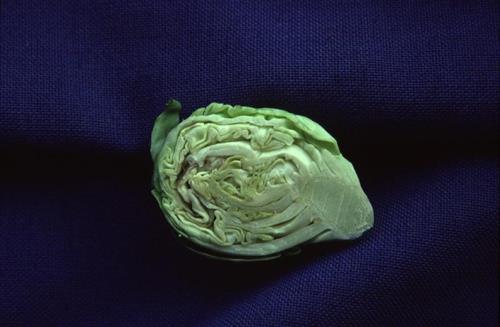 The most obvious symptom of calcium deficiency is "internal tip-burn", which means necrotic lesions on inner leaf tips and margins. Necrosis progresses from tips and margins inwards.
