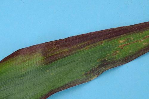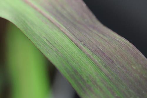 Some maize hybrids show reddish leaves in younger development stages although P supply is sufficient.