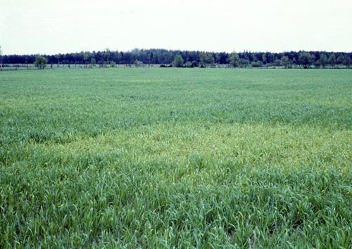 Leaves show chlorosis and growth is stunted. Later on the leaf tips get necrotic.